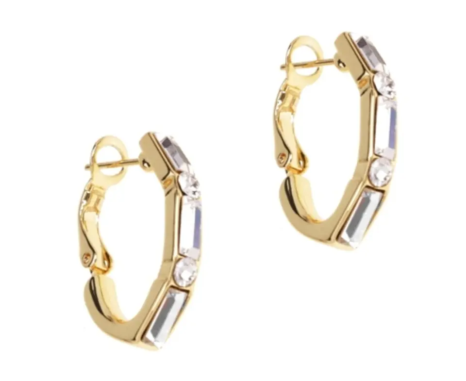 Earrings with Swarovski crystals. Gold-plated earrings. Length 2.5cm, width 0.4cm, thickness 0.4cm.