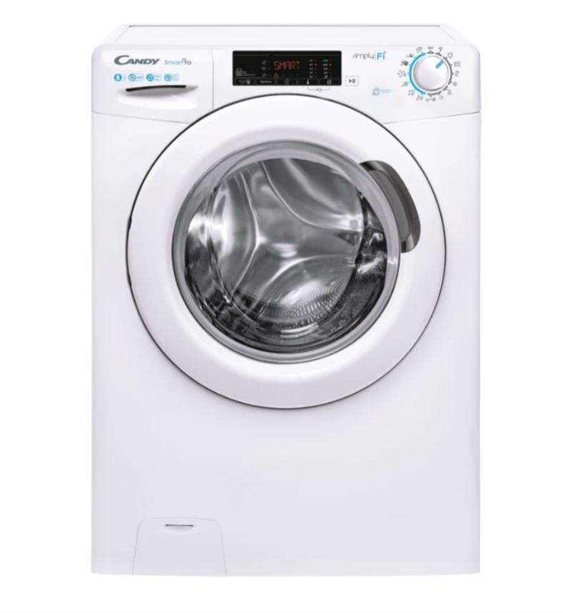 Washing Machine CSO 1285TE-SSmart ProMake laundry easier with the Candy Smart Pro series, offering a complete set of fast cycles designed to meet everyday washing needs. The washing machine is not only versatile but also fast and reliable!Keep Everything Under ControlWith the "My Statistics" function, you can monitor your most frequently used programs and learn how to optimize your laundry.Extend the Lifespan of Your Washing MachineThe intelligent control function provides simplified management and prolonged performance. It informs you about the state of the device by monitoring its operation. In the event of an error or malfunction, the smart guide will help you find a solution on your own.Fast is EasyCandy SmartPro offers a complete set of 9 fast cycles in less than 1 hour. With these cycles, you get excellent results for every type of laundry, and the saved time is yours to enjoy.Maximum FlexibilityWith the delayed start function, your laundry will be ready whenever you want. It allows you to schedule the start of the wash cycle with a maximum delay of up to 24 hours. No more worries about unpleasant odors from leaving wet laundry inside the machine. No more wasting electricity now you can conveniently set the wash to start at the time when electricity rates are most favorable.Minimize LossesOur washing machines minimize energy consumption by reducing losses. Sensitive load sensors detect the size of the load and automatically adjust the amount of water and electricity used.Effective Stain RemovalThe new active foam technology enhances detergent performance, increasing the drum's spin speed on multiple levels, thus improving washing results, saving time, and reducing device vibrations.Save Energy and MoneyAccording to the new energy label, this washing machine is a Class D appliance, and compared to Class G, it consumes at least 24% less power, helping you save money and protect the environment.A World of Remote FunctionsCandy SmartPro is equipped with the new simply-Fi app, which offers additional and unique features such as device status monitoring, voice prompts, performance overview, and wi-fi control. These extra functions make laundry even more intuitive and convenient.