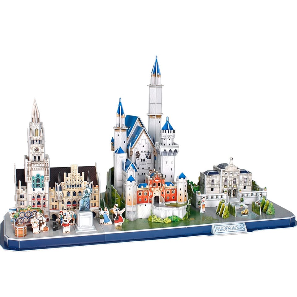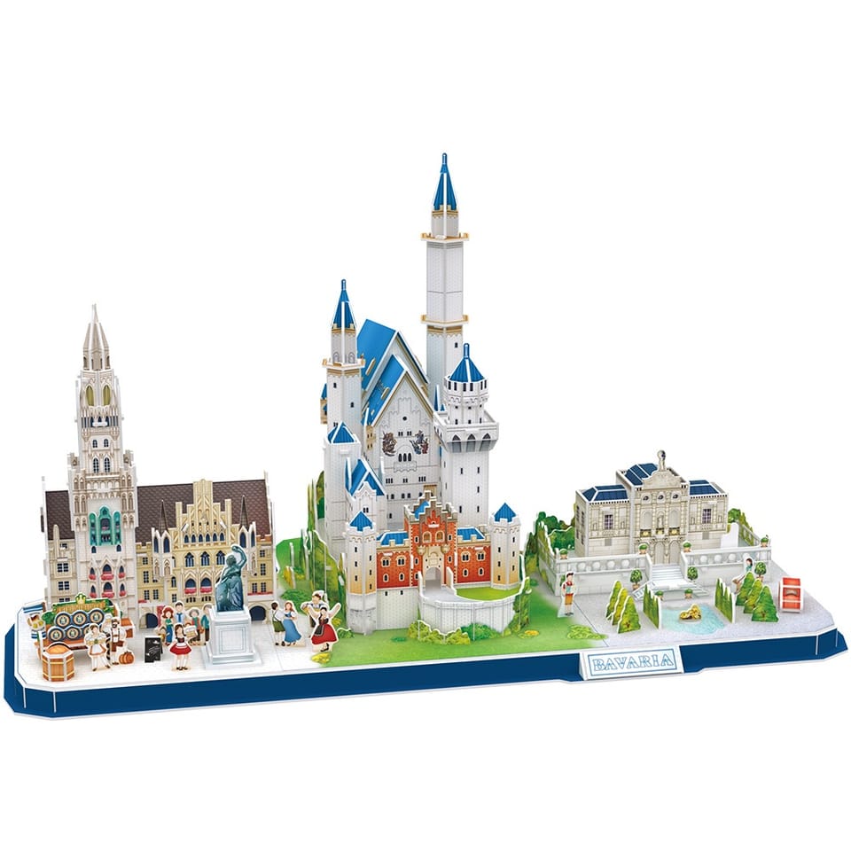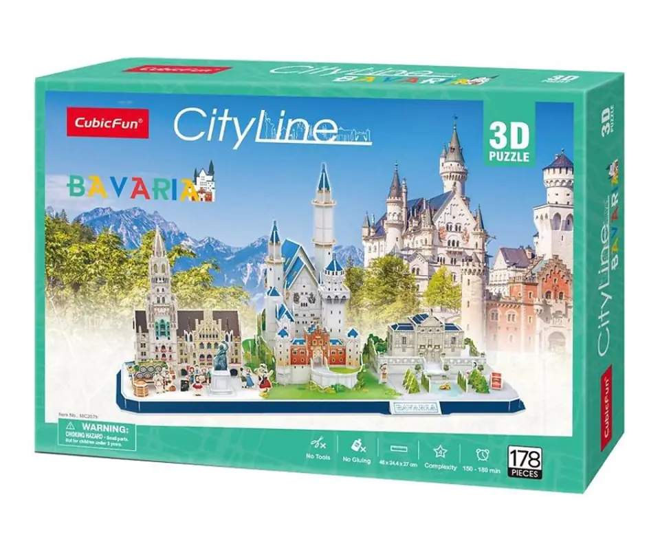 Puzzle 3D City Line Bavaria is exciting fun for children and adults. Cityline is a unique line of the Cubic Fun producer, which shows the panorama of a given city with the most characteristic monuments. The package contains 178 puzzles, made of a special material resembling foam. Puzzles are numbered, scored and placed on sheets. It is enough without any force to squeeze the element out of the sheet and assemble it in accordance with the attached instructions, without the use of glue or special tools.