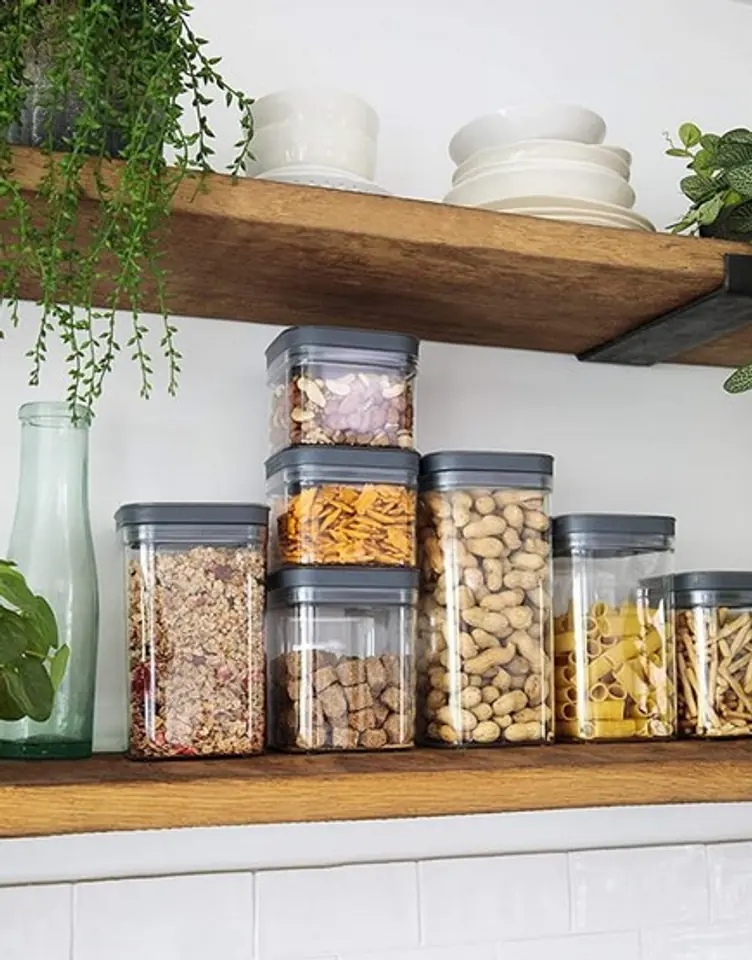 - Dry Cube containers come in three sizes - of different heights, and a specially profiled lid allows you to put the box on top of each other.