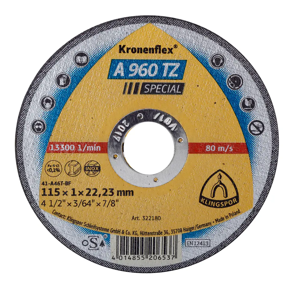 - Type A 980 TZ Disc only 0.8 mm thick cuts even hard materials, e.g. stainless steel sheets, ensuring precise, clean cuts, with hardly any fin, requiring only minimum extra machining