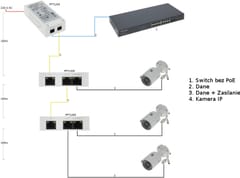 Urządzenie PFT1300 pozwala na połączenie 2 kamer z zasilaniem PoE przy wykorzystaniu jednej linii EthernetKaskadowe połączenie 2 extenderów pozwala na połączenie w ten sposób do 3 kamerUrządzenie jest zasilane ze switcha PoE lub innego urządzenia zgodnego z tym standardemDzięki temu ani extender ani przyłączona do niego kamera nie wymagają dodatkowego zasilania