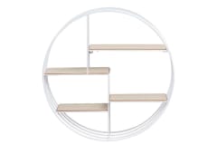 Are you looking for original furniture for your living room or bedroom? The presented Darkenberg bookshelf will surely quickly catch your attention. The product is distinguished by its unconventional shape – four functional surfaces with a rectangular form are inscribed in the round frame. Individual surfaces have been arranged alternately, which additionally affects the original appearance of the furniture.