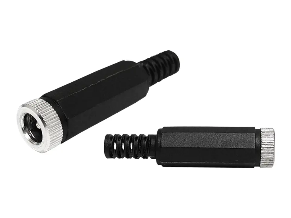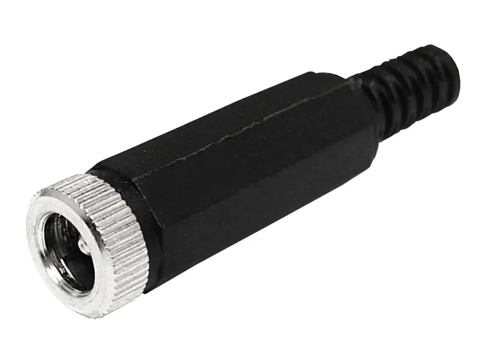 2.5/5.5 power socket for cable with bend. Dimensions:Diameter: 5.5mmPin diameter: 2.5mmMaximum cable diameter: 5mm