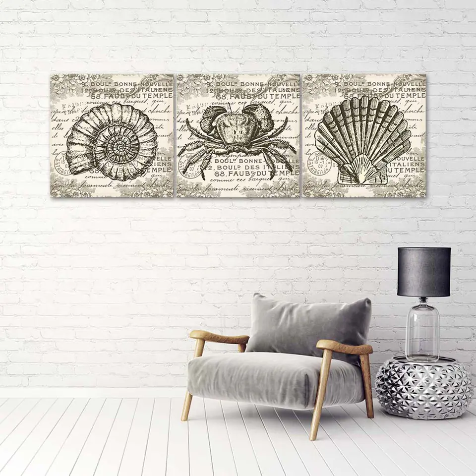 Deco Panel Picture Set, Retro Sea Creatures Size 90x30