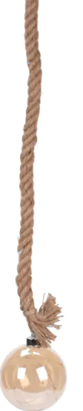 Decorative glass bauble 19LED on a rope diameter 12cm Glass bauble with lamps on a wire, a cord also interspersed with 19LED lamps is a unique decoration of a window or any place! In addition, it is a decoration that shines and gives an amazing effect after dark. Battery bauble with timer. Technical specs: Dimensions Diameter:12 cm, Cord dimensions length: 95cm, Material:glass, cord, Timer, Battery:2xAA, 12LED, Color:natural cord,bauble in amber color,