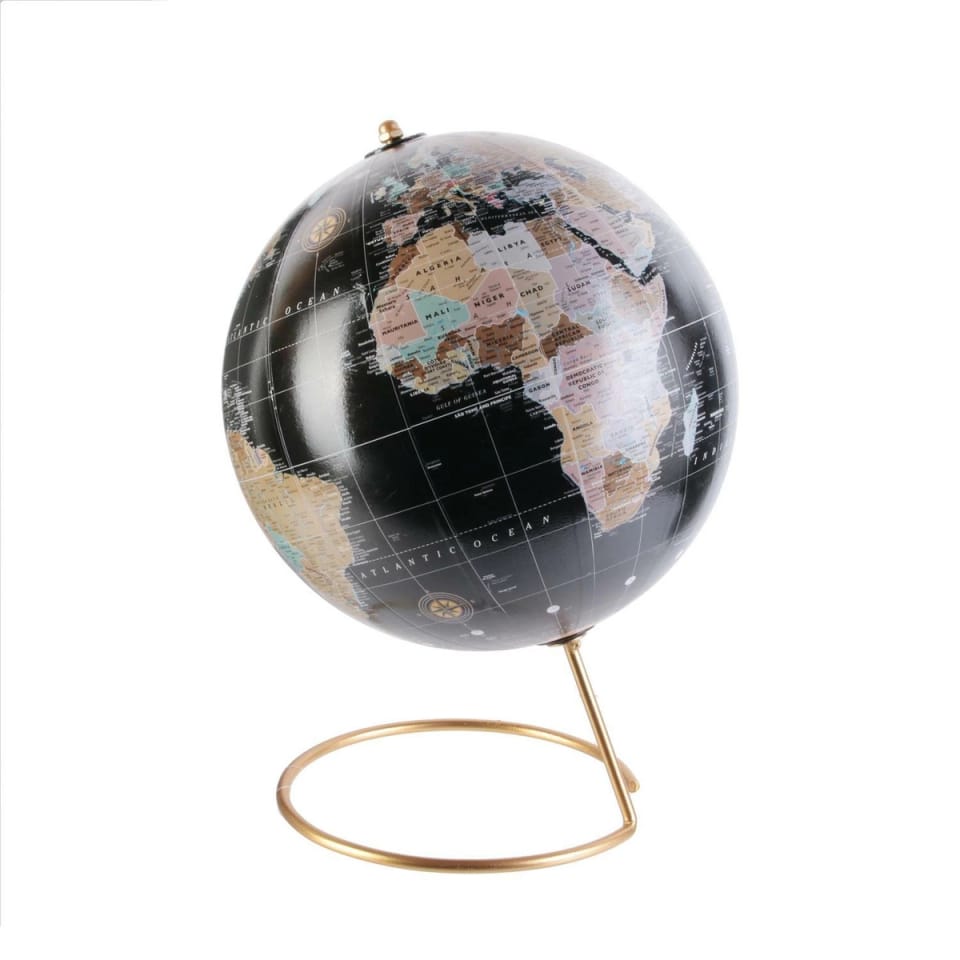 A metal globe in calm colors will be an interesting decorative element of the office or living room. This earthly sphere spectacularly placed on the base will delight travel fanatics. Dimensions: 21,5x29x21,5 cm