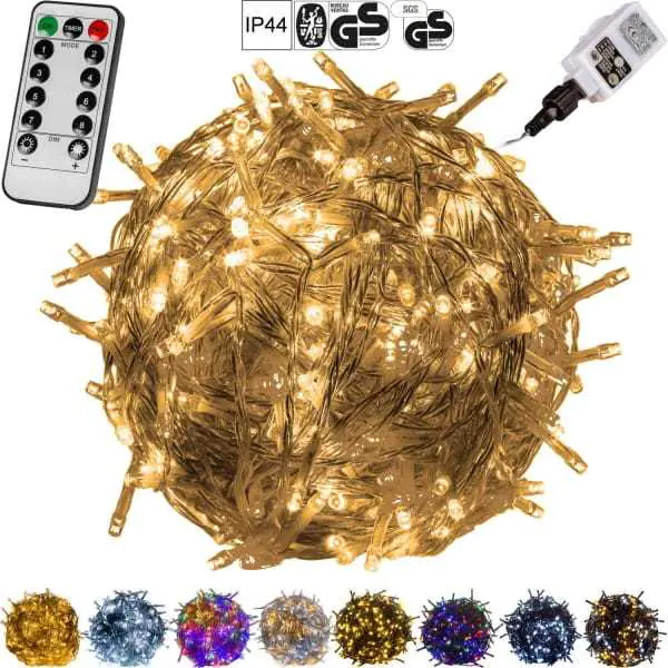 50 LED Hot White Christmas Tree Lights with Remote Control and Programmer External and Internal Lights are ideal for Christmas trees and for Christmas decorations, reeds. The number of 50 LEDs is suitable enough to decorate the Christmas tree. Battery-powered lights with built-in programmer. Technical specification: Number of lamps: 50 LED Color: warm white Power supply: mains Light cable length: 5 m Power cable length: 5 m Cable color: transparent Programmer function - lighting modes: 1. Connection, 2. Light wave, 3. Sequential, 4. Shine, 5. Flash, 6. Submitted by Crossfade on 7. Submitted by Sparkle on 8. Continuous lighting