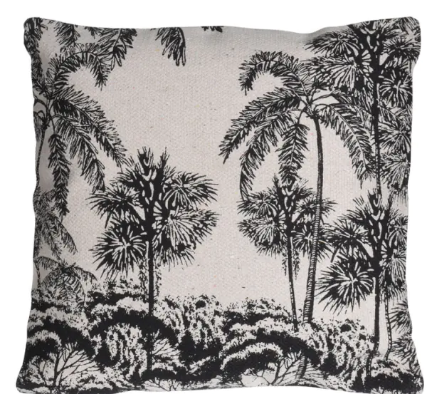 Decorative pillow for the garden of the house 45x45cm cotton palm motif Cozy and at the same time decorative addition to any apartment, garden. Its modern design and Palm design. You can adjust the pillow to any interior and individual preferences, which will allow you to create the perfect place to relax and rest. The pillowcase is equipped with a hidden zipper, which allows for quick and convenient removal in case of washing at 40°C. Technical specification: Dimensions: 45x45cm, Material: cotton Zipper, Shape:square, Color:white, black Pattern:Palm print
