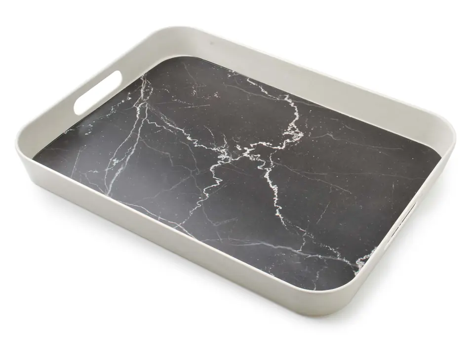 Decorative tray made of plastic, with Black Marble motif, in a rectangular shape with dimensions of 40x31cm. It can be used as a tray to serve hot or cold dishes, snacks or drinks. The patera can also be used as a stand for candles, dryers, flowers or other decorative compositions. Plastic works perfectly in the kitchen or bathroom due to its resistance. Thanks to this, the tray will serve in good condition for years, even despite frequent use.