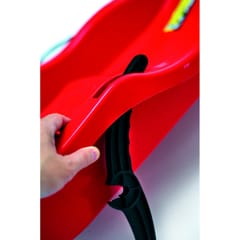 Deep plastic sled with levers for braking and steering and pulling line.