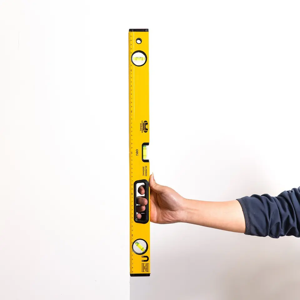 In order to properly mount shelves or a mirror, it is worth using a spirit level that will help you determine the level of construction, which will allow you to attach the object evenly. This tool is indispensable when performing any work, where the horizontal and vertical setting of planes is the most important. The Deli aluminum spirit level has 3 libels: 45°, 90° and 180°, which allow reading in different ways. A measure was also placed along the entire length of the tool. The robust construction guarantees durability, and the weight of only 380 g ensures long-lasting comfort of use.