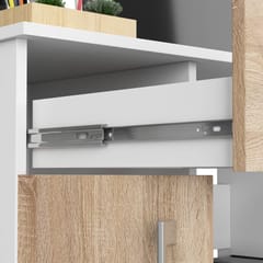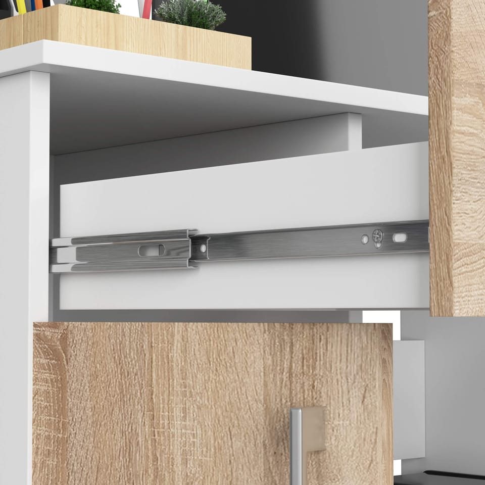 The JAY computer desk white/sonoma is a universal and timeless piece of furniture. It is used not only in small, intimate office spaces, but also in residential rooms. Maintaining comfortable dimensions and at the same time a large amount of storage space will work not only in the children's and youth room, but also in the bedroom or living room, especially if you need to create an additional computer station, e.g. for work or remote learning.