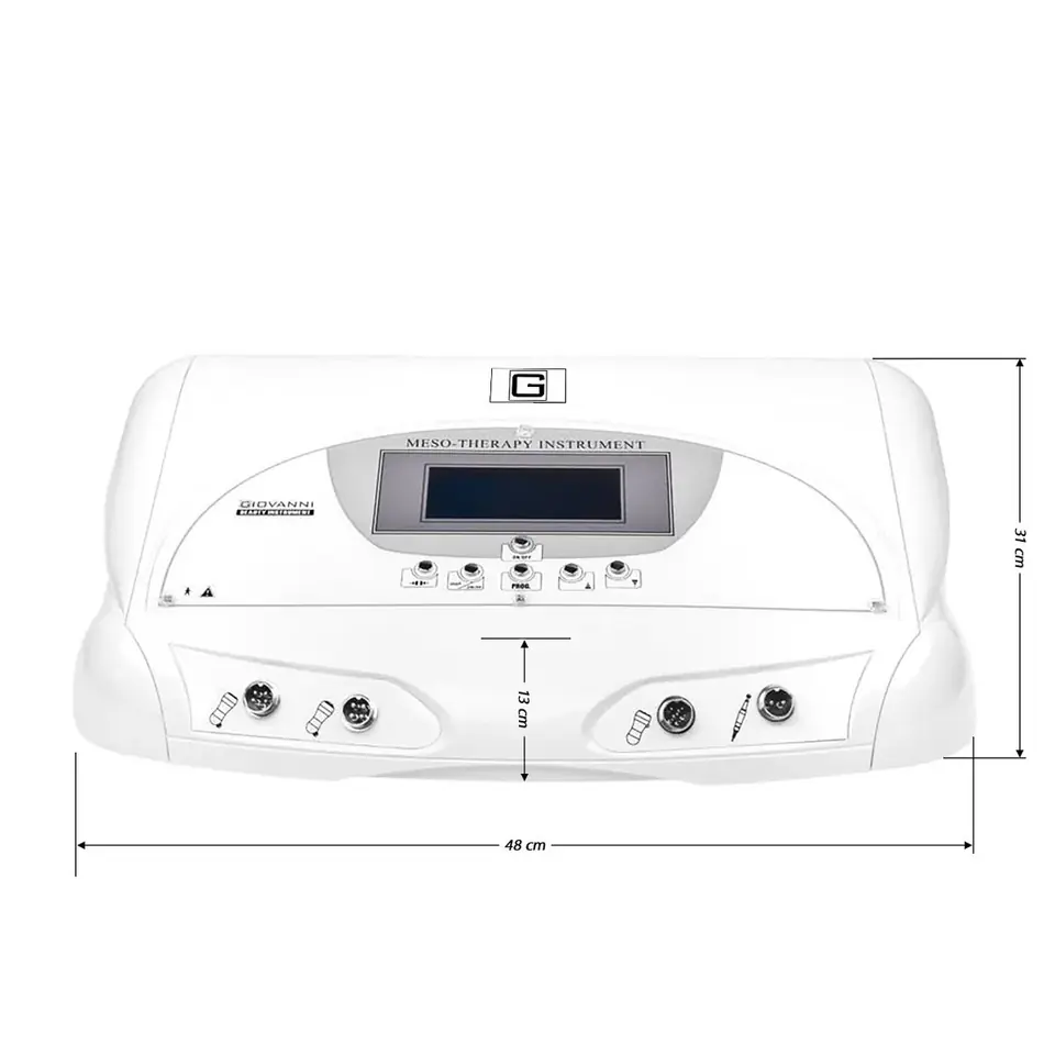 The avant-garde, streamlined housing definitely increases the appearance of the beauty salon. The intuitive control panel with liquid crystal display enables quick and easy operation, which will improve the quality of the services offered. Needle-free mesotherapy is a highly effective, safe therapy that leaves no wounds on the skin. Mesotherapy treatments based on the use of electroporation and electroosmosis to nourish deep cells, lymphatic drainage, accelerate metabolism, improve lymph flow and blood circulation, as well as eliminate wrinkles, brighten the skin, maintain its proper hydration, reduce cellulite, accelerate fat burning and slimming have completely replaced traditional therapies using microneedles. Compared to the use of individual skin care products, mesotherapy allows to achieve greater effectiveness in the absorption of care products, eliminating problems associated with not penetrating deeper than the epidermal layer, as well as shortening the duration of therapy. The device is available in white. The device does not have a passive electrode for the client, a closed circuit is the person performing the procedure.