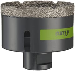 Diamond drill bits for dry drilling. With M14 shank thread for mounting in angle grinder. For making holes in glaze, clinker, porcelain stoneware, granite, ceramic tiles, marble, etc. Smaller drills, up to 25 mm in diameter, should be cooled with water after each hole has been made. Larger drills do not require such cooling.