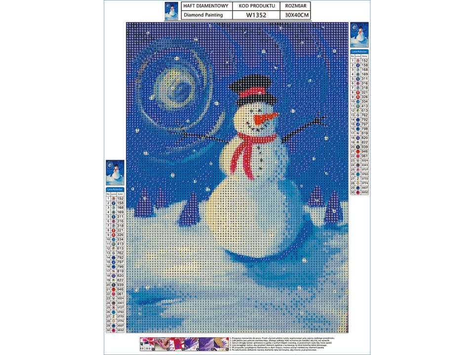 The offered set contains all the necessary elements to make a ready-made puzzle. The game is to put the appropriate diamonds on a numbered canvas - thus creating a work of art - a picture.