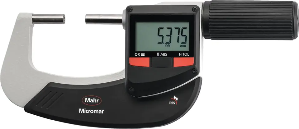 Design: stainless steel measuring spindle, fully hardened and ground, measuring spindle and anvil reinforced with cemented carbide, hole for fixing measuring tips with a diameter of 3.5 mm, varnished steel bail, ratchet extended forward, QUICK DRIVE – quick adjustment mechanism (5 mm per revolution), isolation from hand heat. Digit height on 10 mm LCD display, IP65 rating, data transmission via integrated radio system. Supplied with CR2032 battery, 3 V, in case.