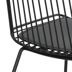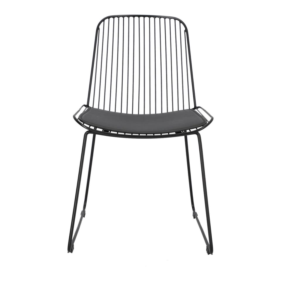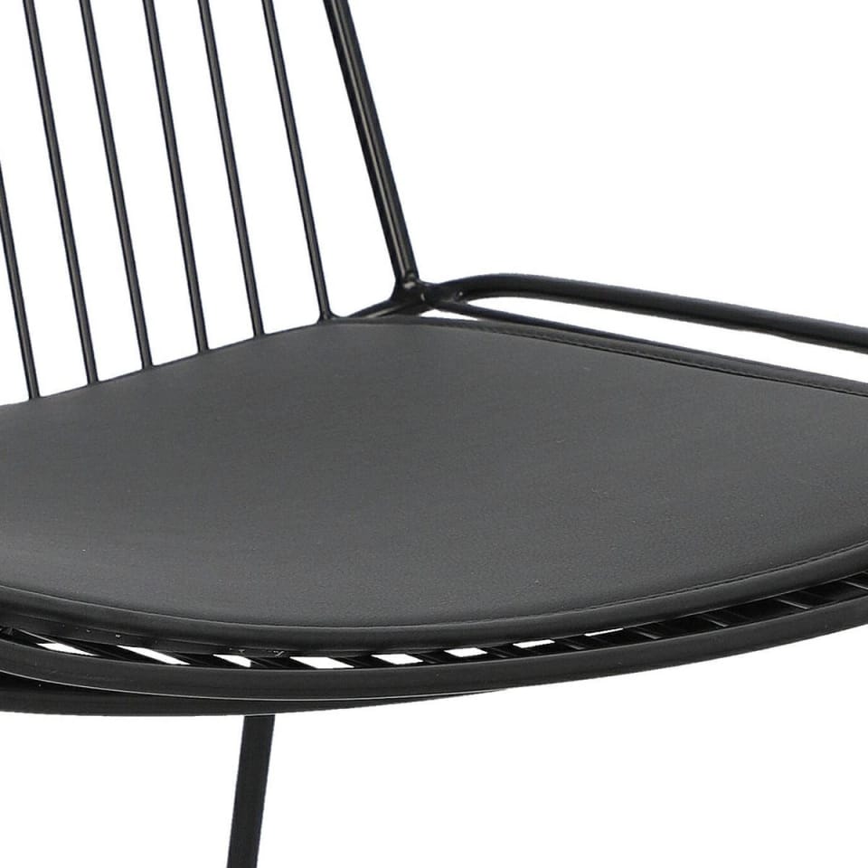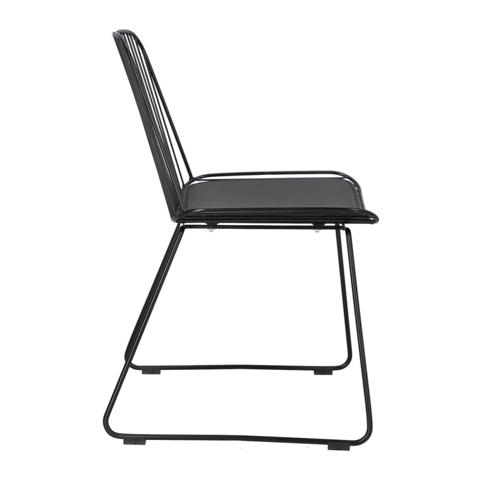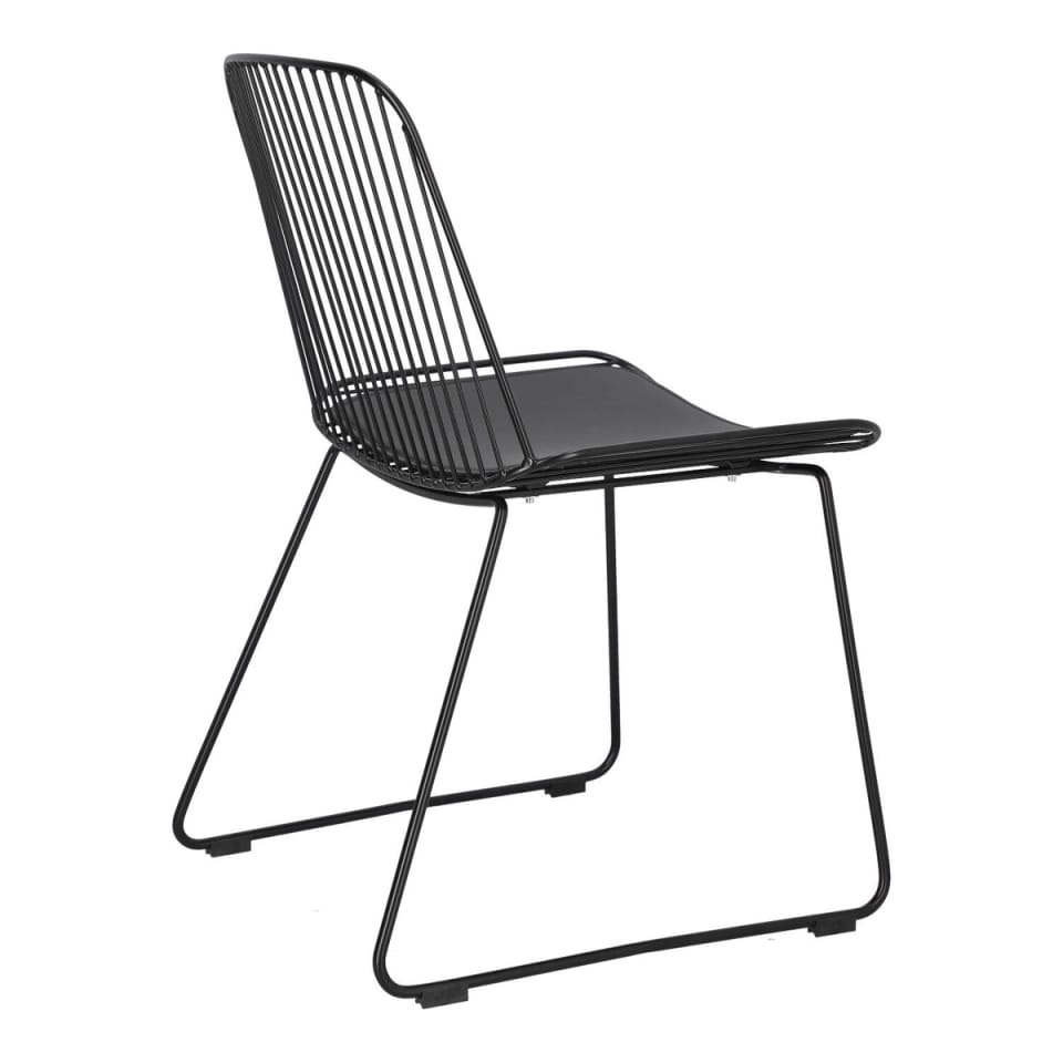 Black loft chair Dill with eco leather cushion is a bold design for a modern interior. Delightful in its simplicity, the chair will not only be a comfortable seat, but also a decoration of the living room or dining room. A chair with a seat and backrest made of many thin spans is an unusual piece of furniture. The base of the chair consists of skids secured with a plastic cap that prevents air scratches under the chair. The chair made of powder-coated metal in black is kept in a semi-matt finish. The cushion on the seat is removable. Carton dimensions: 67x91x58 cm Weight: 28kg Maximum 4pcs in one carton