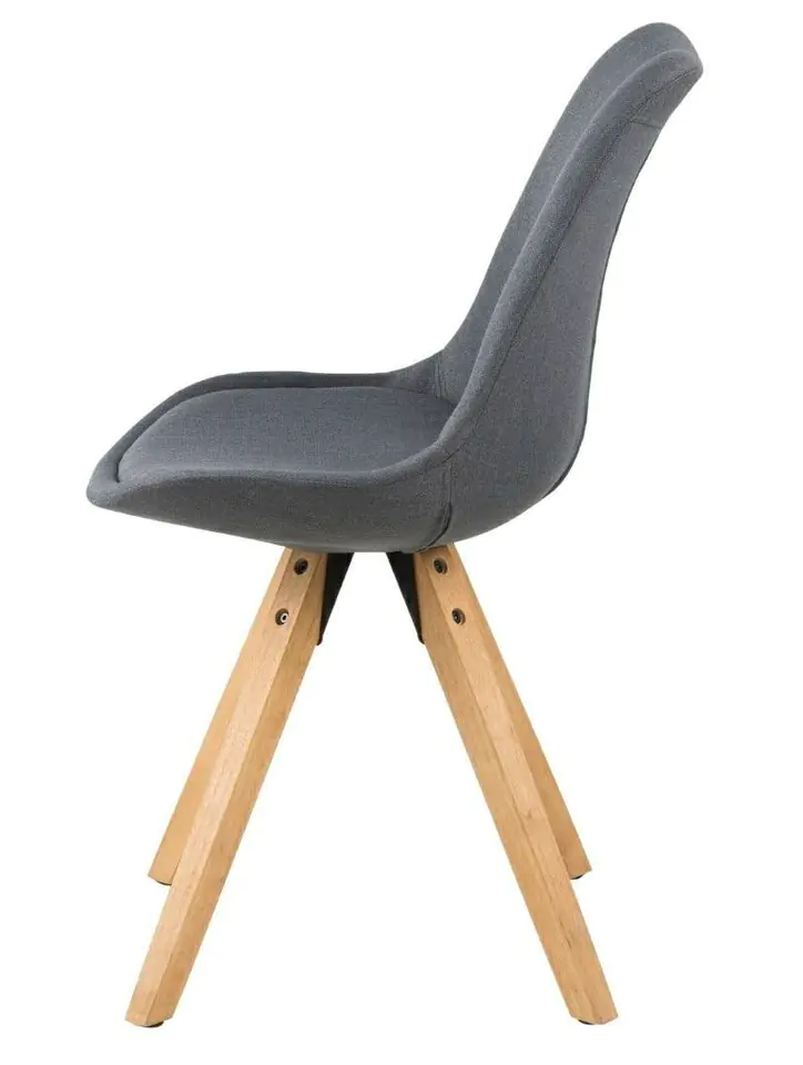 The Dima chair is characterized by a simple but delightful form. The seat was upholstered with melange dark gray fabric. The base is made of rubber wood. Seat height: 49 cm Seat width: 48,5 cm Seat depth: 40 cm