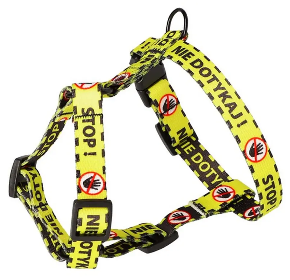Some people, especially those who don't have dogs, can't read their dog's messages well. Clear information coming from a clear inscription on the suspenders, leash or collar should be understandable to almost everyone. We were inspired to create the "Don't touch" collection by the "The Yellow Dog Project" initiative. The idea of the project is to draw the attention of walkers to the yellow color that is part of the dog's "wardrobe". Yellow is supposed to communicate that this particular dog needs more space and we should not disturb him or approach him.
