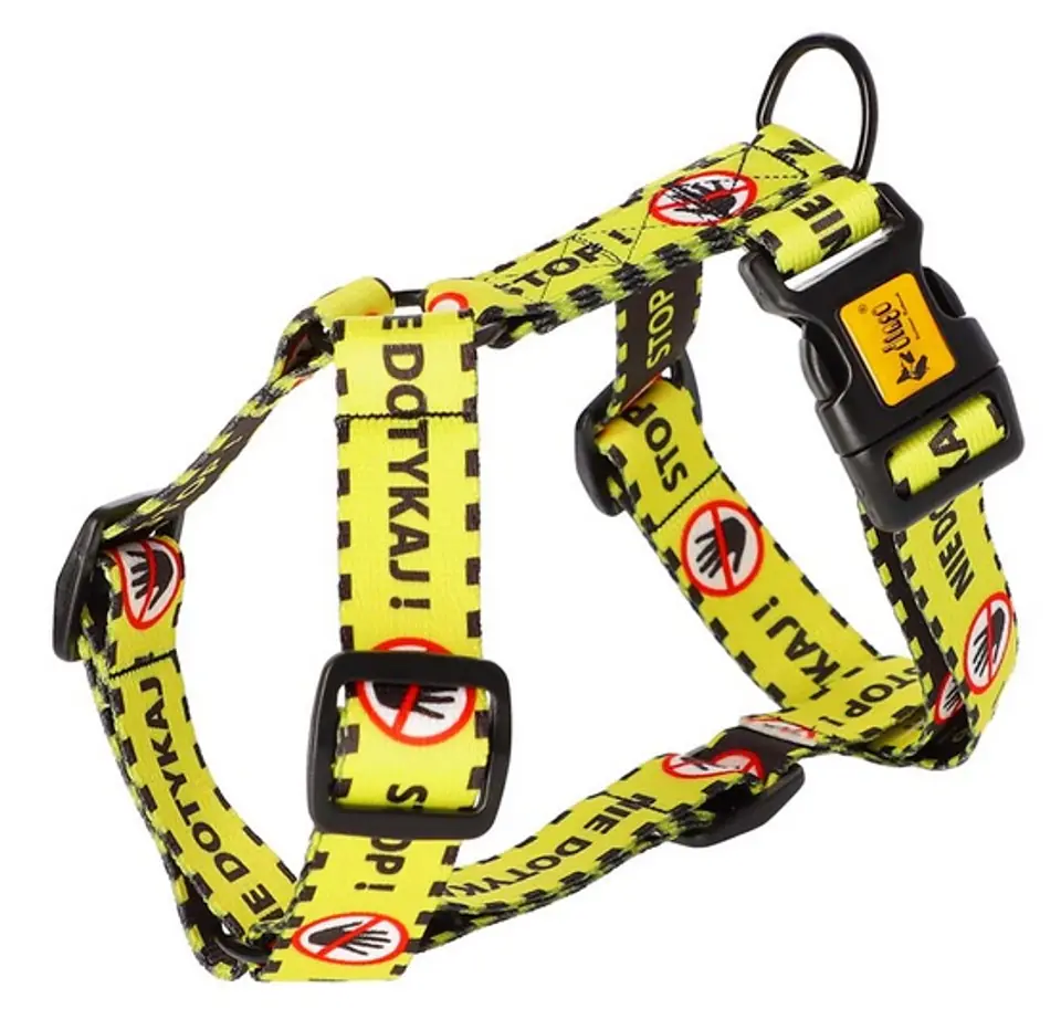 Some people, especially those who don't have dogs, can't read their dog's messages well. Clear information coming from a clear inscription on the suspenders, leash or collar should be understandable to almost everyone. We were inspired to create the "Don't touch" collection by the "The Yellow Dog Project" initiative. The idea of the project is to draw the attention of walkers to the yellow color that is part of the dog's "wardrobe". Yellow is supposed to communicate that this particular dog needs more space and we should not disturb him or approach him.