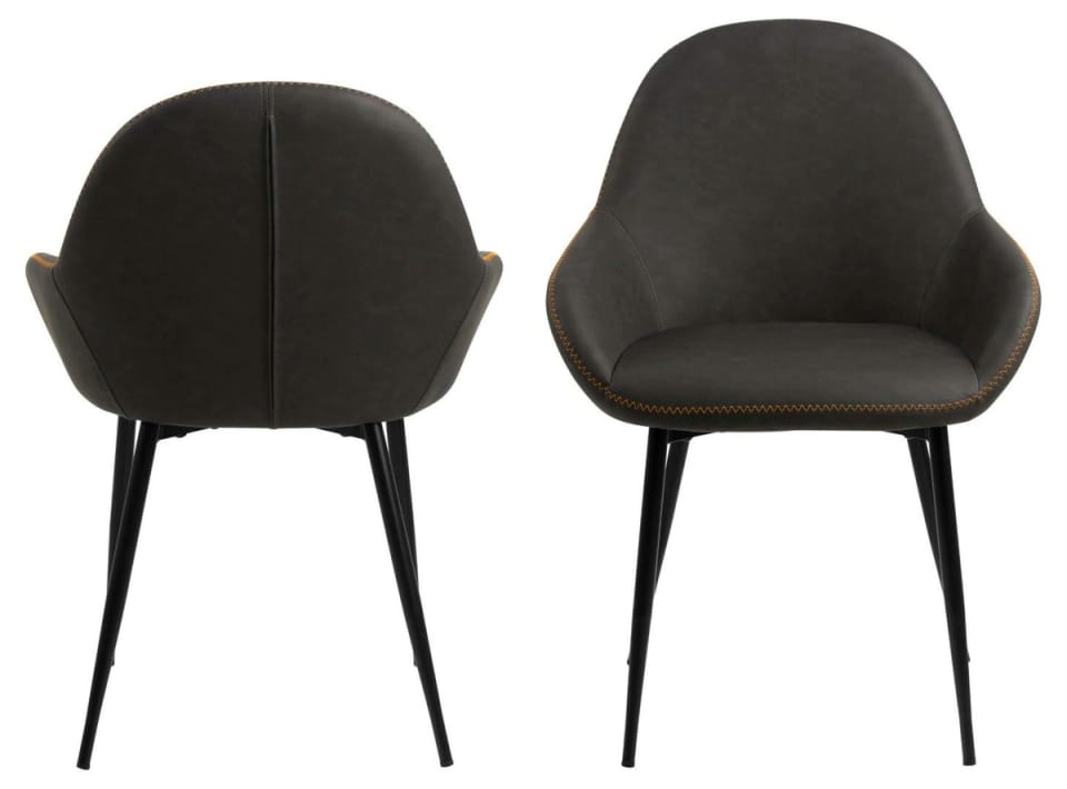 The furniture is characterized by an ergonomic shape that has been developed with seating comfort in mind. It allows you to freely support your back and hands. It is also worth taking a look at decorative elements in the form of contrasting stitching. Thanks to them, the chair acquires a more unique character. The dark gray seat blends in with the black legs in an aesthetic way, creating a harmonious whole. The furniture is finished with high-quality fabric that maintains an attractive appearance for years.