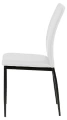 The Demina-3 chair fully deserves to be called a universal piece of furniture, which is influenced by its color scheme. The manufacturer decided to use white upholstery, which can easily be adapted to the colors dominating in a given interior. The chair looks great, among others, in a duet with an industrial or glass coffee table. It can also complement a folding table made of wood, helping to create a comfortable space for feasting together. In the role of upholstery, a high-quality leather-like material was used.