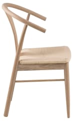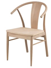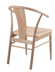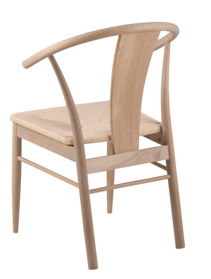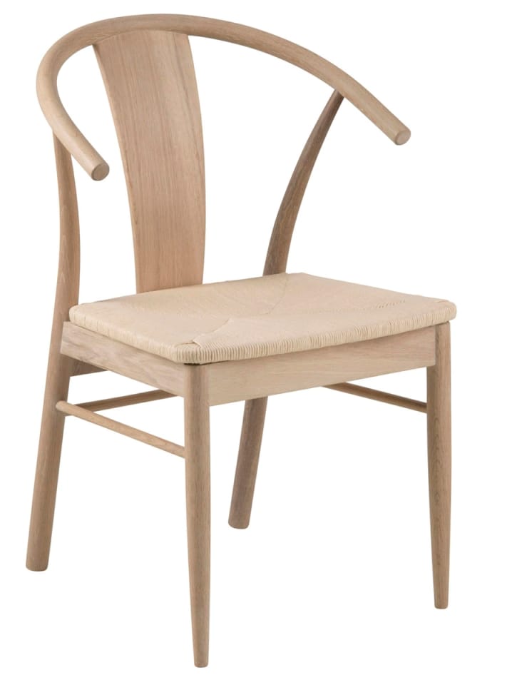 The whole chair was made of oak wood, additionally stained and varnished. The furniture also comes with a woven seat made of paper, which is quite an unusual solution. We guarantee, however, that this material is extremely convenient to use and maintain cleanliness. The stable legs of the chair are 43 cm high, while the backrest is 41 cm. The narrow profiled backrest and short, but highly mounted armrests also deserve recognition.