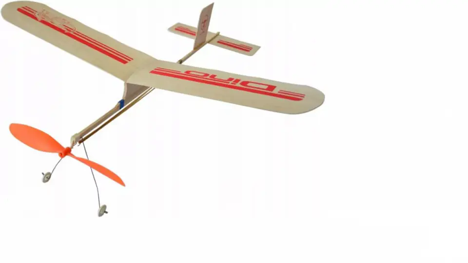 Very easy to assemble DINO model with rubber drive. The fuselage of the aircraft is made of balsa and pine, and the wings are made of durable foam. In addition, the chassis for the model is included. The whole is self-assembly.