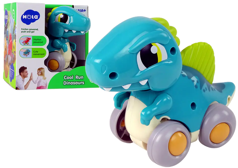The figurine depicts a cute green dinosaur with bright green crests. Just press the dinus to the ground, let go and admire how it rushes forward. It easily moves on flat surfaces, stops on obstacles. A child who wants to catch up with a dinosaur will be more willing to move and take his first steps. The dinosaur opens and closes its mouth while driving.