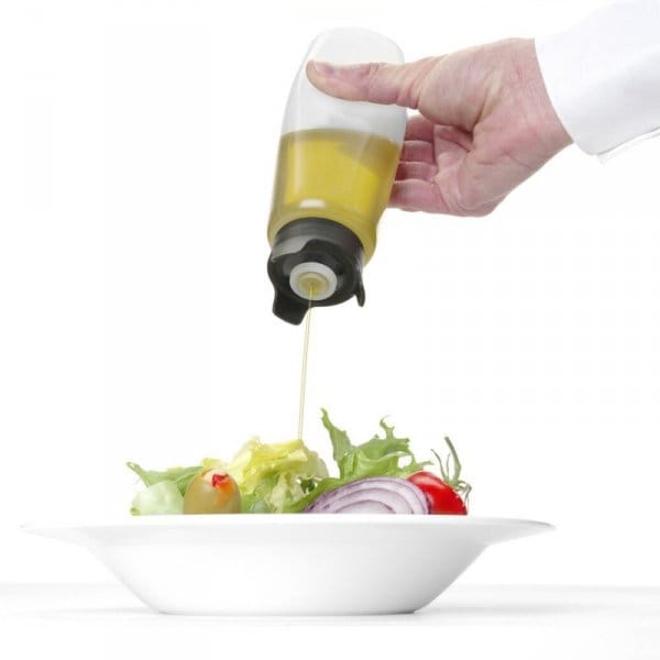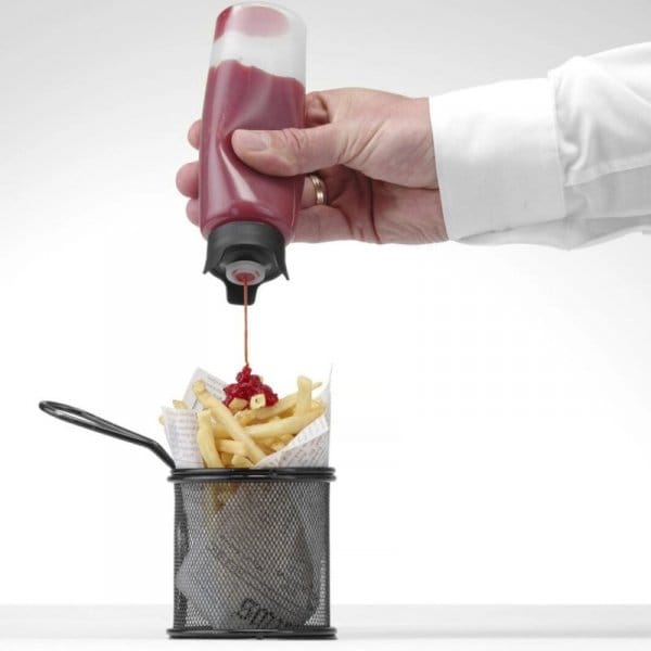 The Hendi sauce dispenser will work in buffets, bars or restaurants. It was designed by Robert Bronwasser and made of polyethylene. The 230 ml bottle is transparent and has a specially designed dosing cap. The design of the bottle allows you to put it upside down without the risk of sauce leakage. Dishwasher safe.