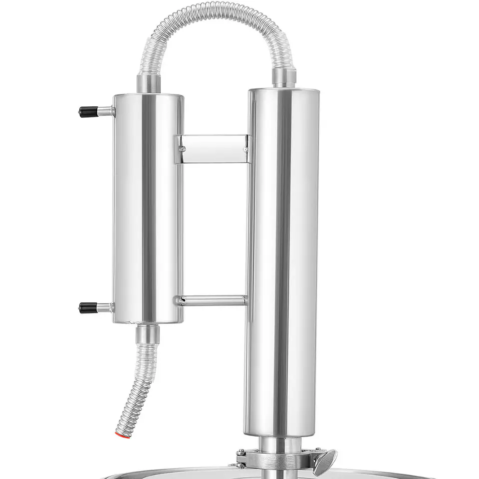 The Royal Catering distiller effectively purifies water from salts, trace elements, microorganisms, lime residues, lead and other impurities. It allows you to produce essential oils and perfumes. The capacity of the distiller is 35 l, the diameter measures 300 mm. Any heat source can be used to heat it, e.g. an electric hob or a gas stove. The device includes all the necessary hoses and containers needed for an efficient distillation process. Individual elements: cylinders, connections, bases can be quickly connected to each other. The cooling hose has a length of 1.5 m, provides ideal results when distilling water, oils or other chemicals. The included alcoholometer allows you to reliably determine the alcohol content of the distilled liquid. The stainless steel used in the product meets the highest hygienic standards, is resistant to corrosion and easy to clean. Folding handles allow safe transport and handling.