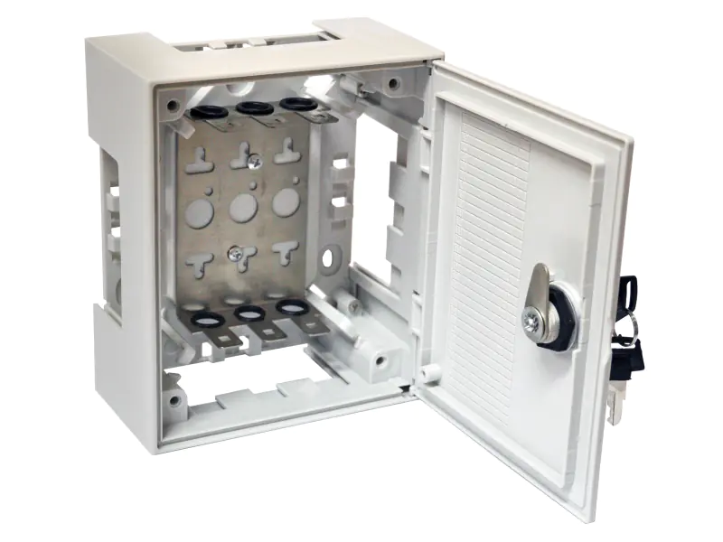 The patch box allows you to create distribution points for telephone signals based on LSA disjoint and inseparable telephone connectors. It allows you to easily terminate all cables at one point. Implemented in the form of a housing for surface or flush-mounted mounting (hinges hidden in the housing) with doors equipped with a lock or transom. Made of self-extinguishing thermoplastic ABS.