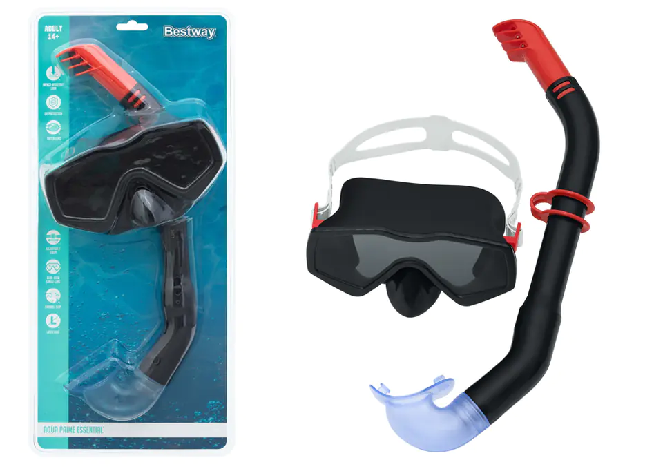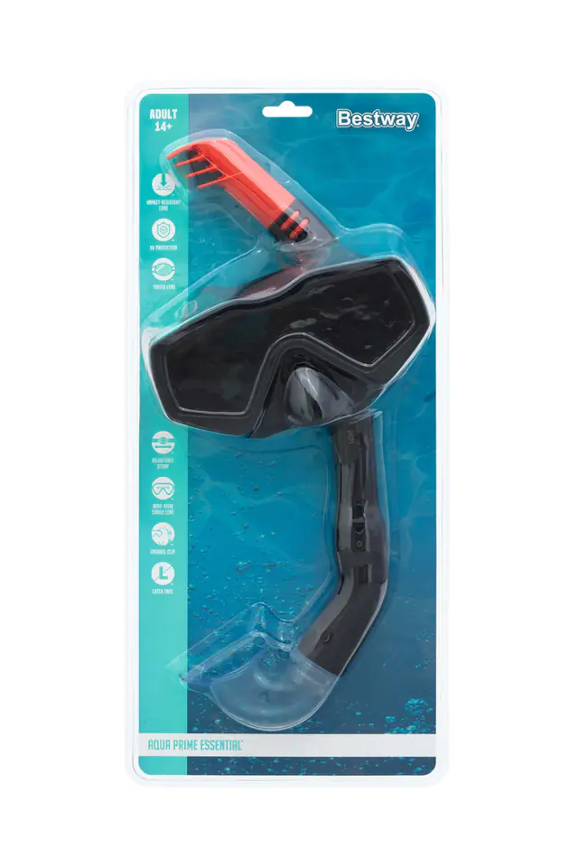The mask is equipped with tempered glass lenses that will provide you with adequate visibility under water and protection against damage. The tight collar in the mask also prevents water from entering the eyes, yet it adapts perfectly to the face. An ideal element without which the dive could not take place is also included in the snorkel set. The mouthpiece is made with orthodontic precision, thanks to which it will not cause discomfort and you will be able to enjoy the water attraction.   The product is intended for people over 14 years of age.