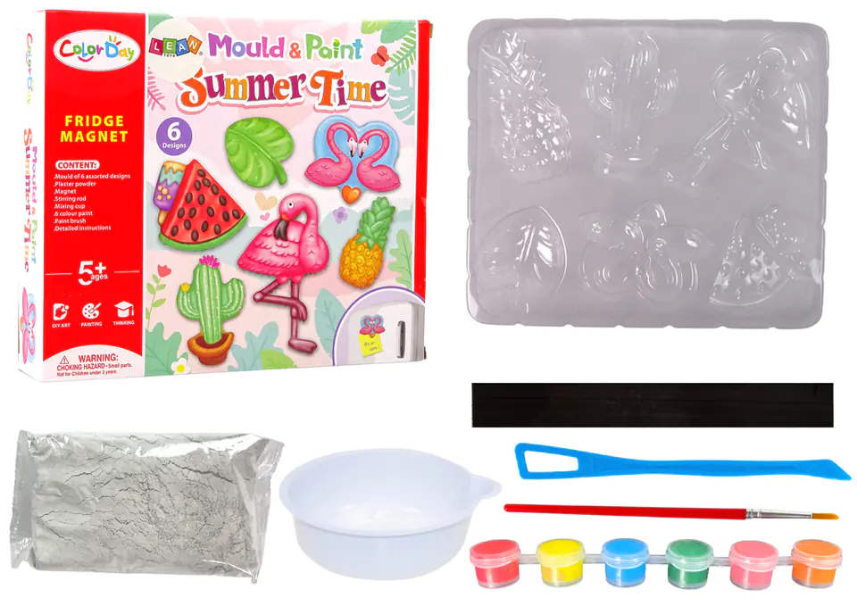 Colorful set for creating fridge magnets is the perfect entertainment for both young and old. With the help of the included gypsum you can create beautiful animals, fruits and plants that are associated with holidays.
