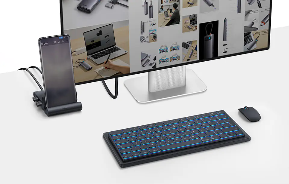 With the Baseus docking station, you can enhance your work comfort and get an even better gaming experience. The product allows you to transmit the image from your smartphone to the computer screen, and its resolution reaches up to 4K. Choose the Baseus dock and enjoy brilliant colour reproduction and rich detail.