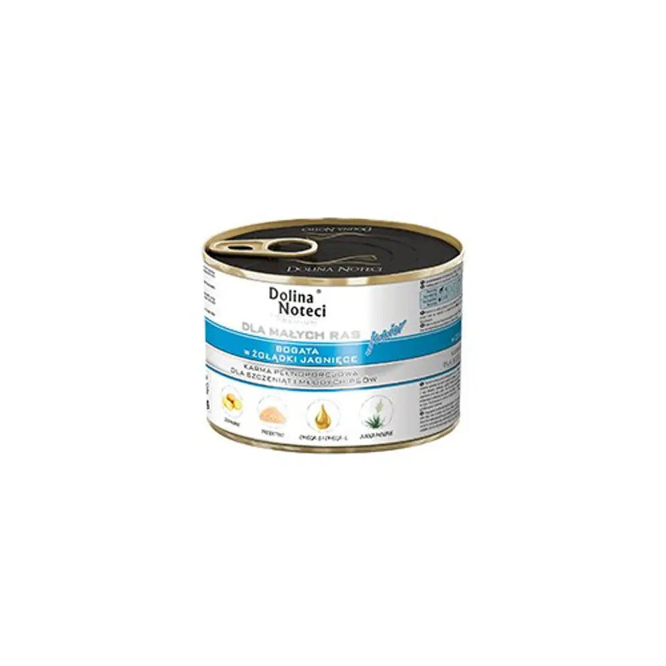 Complete food for puppies and young dogs of small breeds rich in lamb stomachs 185 g
