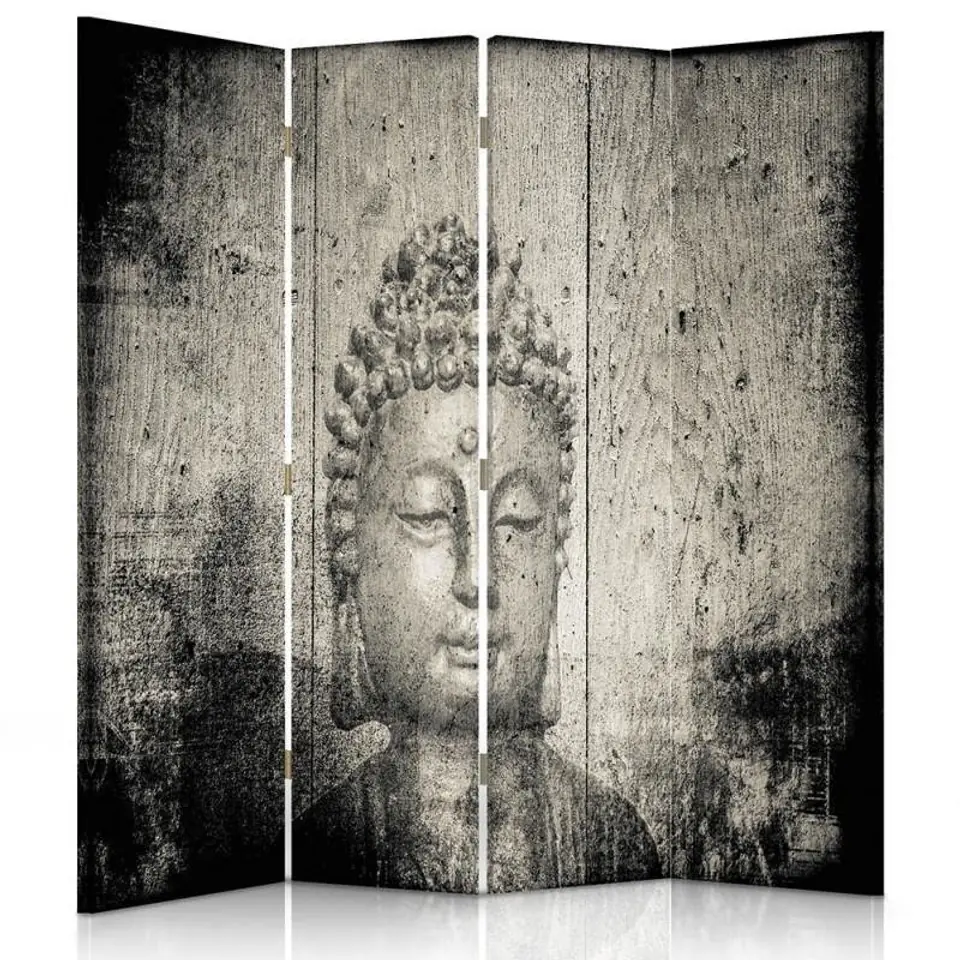 Double-sided screen, Buddha image in grey Size 145x170