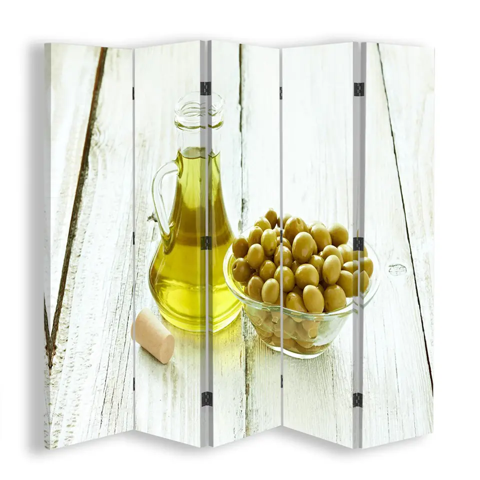 Double-sided screen, Olives in a bowl and olive oil Size 180x170