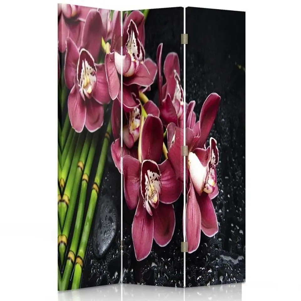 Double-sided swivel screen, Orchid with bamboo Size 110x170
