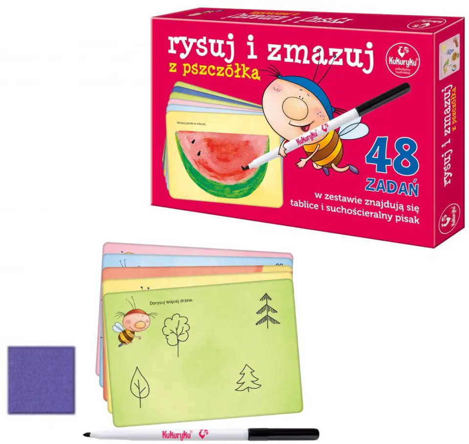 Draw and erase this set of dry-cleaned tablets with a mousse and 48 fun tasks with a bee that prepare the children to learn to write, help them concentrate, encourage them to work and teach precision.