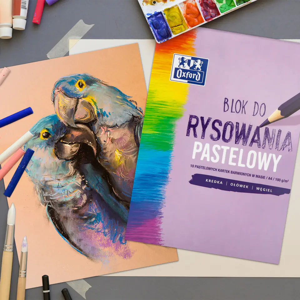 Drawing blocks in pastel colors are resistant to repeated abrasion with an eraser. Paper dyed in mass makes the tears have colored edges. They are ideal for cut-outs and manual work. Fashionable, pastel colors will ensure the attractiveness of artistic and artistic works.