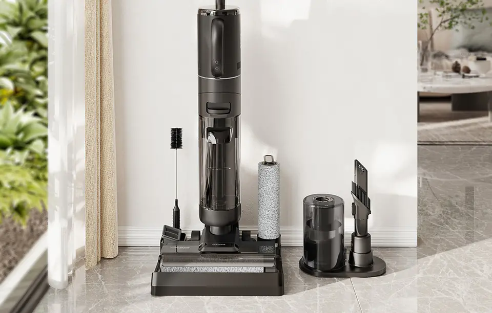 Bet on functionality and convenience by choosing Dreame M12. The cordless vertical vacuum cleaner provides unparalleled comfort of use and allows you to vacuum and mop the floor at the same time. It has 2 water tanks and automatically adjusts the amount of water to the degree of contamination of the surface. It also offers a self-cleaning function, and voice prompts and LED display make operation easier. Check what else can surprise you!