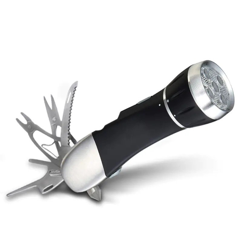 - Flashlight giving an intense, bright light and a red lamp, ready to be used as an alarm signal,