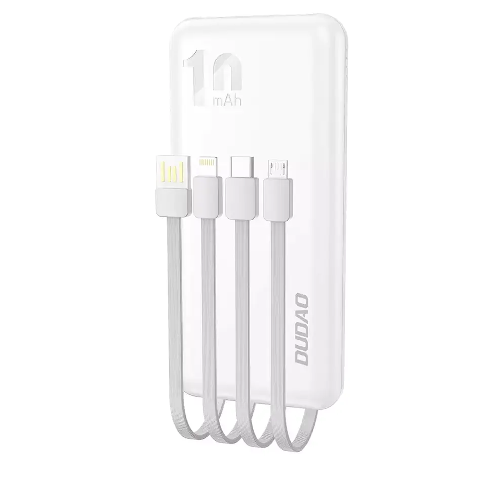 - You don't have to remember to take charging cables with you! The universal Dudao K6Pro powerbank has built-in cables with the most popular terminals: micro USB, USB Type C and Lightning
