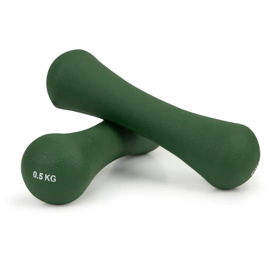 A set of two weights of 0.5kg each, great for beginner athletes who start their adventure with fitness exercises . Such a set allows you to exercise many muscle groups , m.in arms, shoulders, legs and even the abdomen.