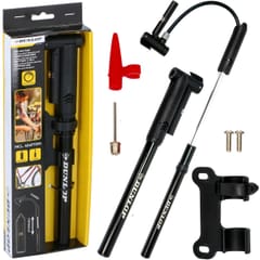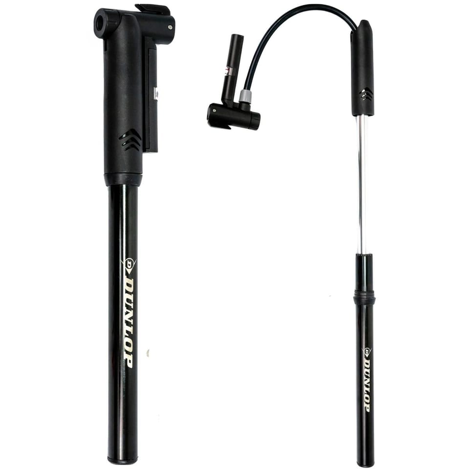 Mini bicycle pump by DUNLOP. The powerful small pump will work well when driving on the road, mountain and when pumping sports equipment.