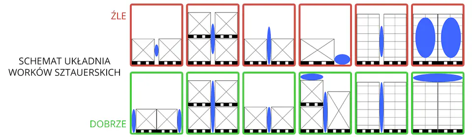 In order for the pillows to fulfill their task, they must be arranged in relation to the transported cargo. In the diagram above, you can see examples of bad and good use of pillows. There is no golden rule and each transport requires an individual approach and the use of different solutions.