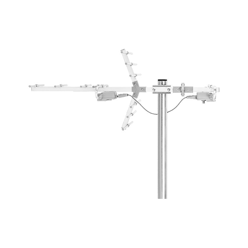 Duplex antenna consistency can be used in places where the signal is transmitted in one or two different polarities. The antenna has been equipped with a symmetrizer and a low-loss crossover. Plastic details are made of the highest quality materials with the addition of UV stabilizers, which protect them from the harmful effects of UV rays. The structural elements are made of high quality aluminum and galvanized steel, which guarantees a long service life. Duplexa enables reception of DVB-T channels broadcast in the VHF/UHF band as part of nationwide multiplexes MUX1, MUX2, MUX3, MUX8 and local. The antenna is equipped with an F signal socket, which means