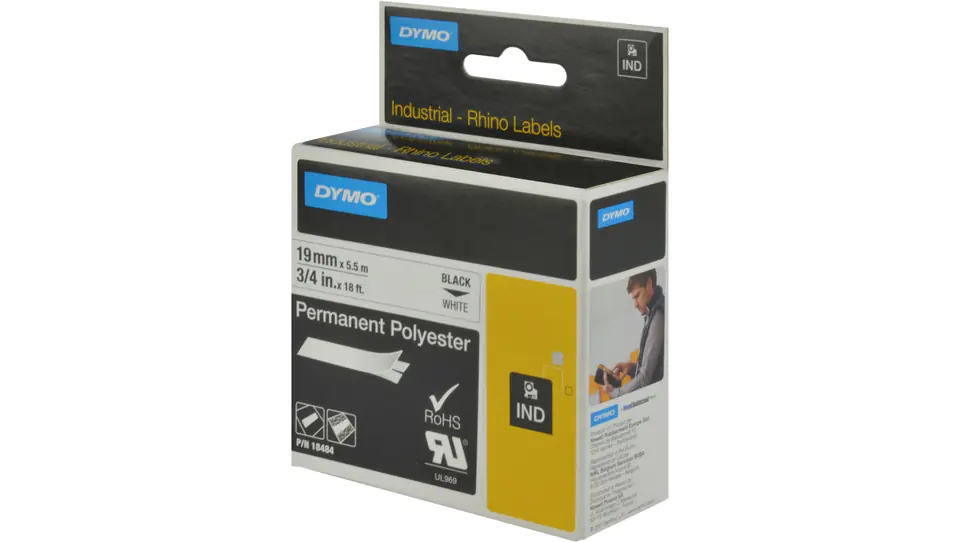 Durable polyester tape 19mm x 5.5m black on white S0718220 18484